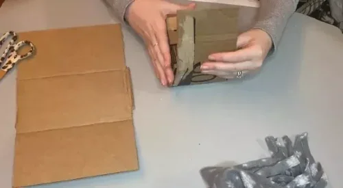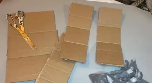 And the fourth cardboard strip for the fourth wall of the box becomes the lid to the box.